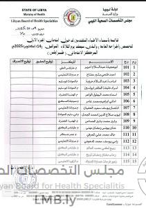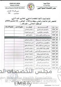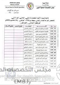 قائمة بأسماء الاطباء المتقدمين لدخول امتحان الجزء الاول لتخصص الجراحة العامة (مصراتة) 10 أكتوبر، 2025