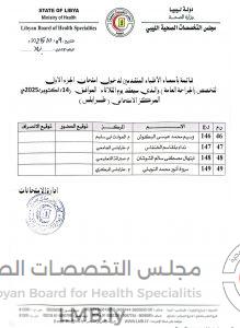 قائمة بأسماء الاطباء المتقدمين لدخول امتحان الجزء الاول لتخصص امراض الجلدية (طرابلس – بنغازي – مصراتة – سرت ) 11 أكتوبر، 2025