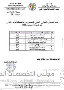 نتيجة امتحان النهائي العملي لتخصص جراحة المسالك البولية