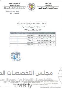 قائمة بأسماء الاطباء المتقدمين لدخول امتحان الجزء الاول لتخصص امراض الباطنة (بنغازي – سرت – درنة) 14 ديسمبر، 2025