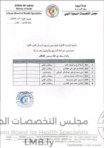 قائمة امتحان الجزء الثاني كتابي لتخصص امراض الباطنة (طرابلس ، مصراتة ، سبها ، درنة بنغازي) 14 ديسمبر، 2025